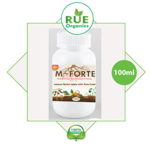 M~FORTE: A liquid soil biostimulant cum foliar fertilizer containing fortified bioactive microbes that replenishes soil Heath by replacing lost soil microorganisms caused by use of synthetic fertilizers over time. M~FORTE protects the plant against pathogens. It also Increases resistance to water and abiotic stresses.