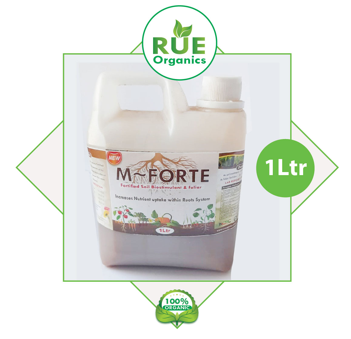 M~FORTE A liquid soil biostimulant cum foliar fertilizer containing fortified bioactive microbes that replenishes soil Heath by replacing lost soil microorganisms caused by use of synthetic fertilizers over time.